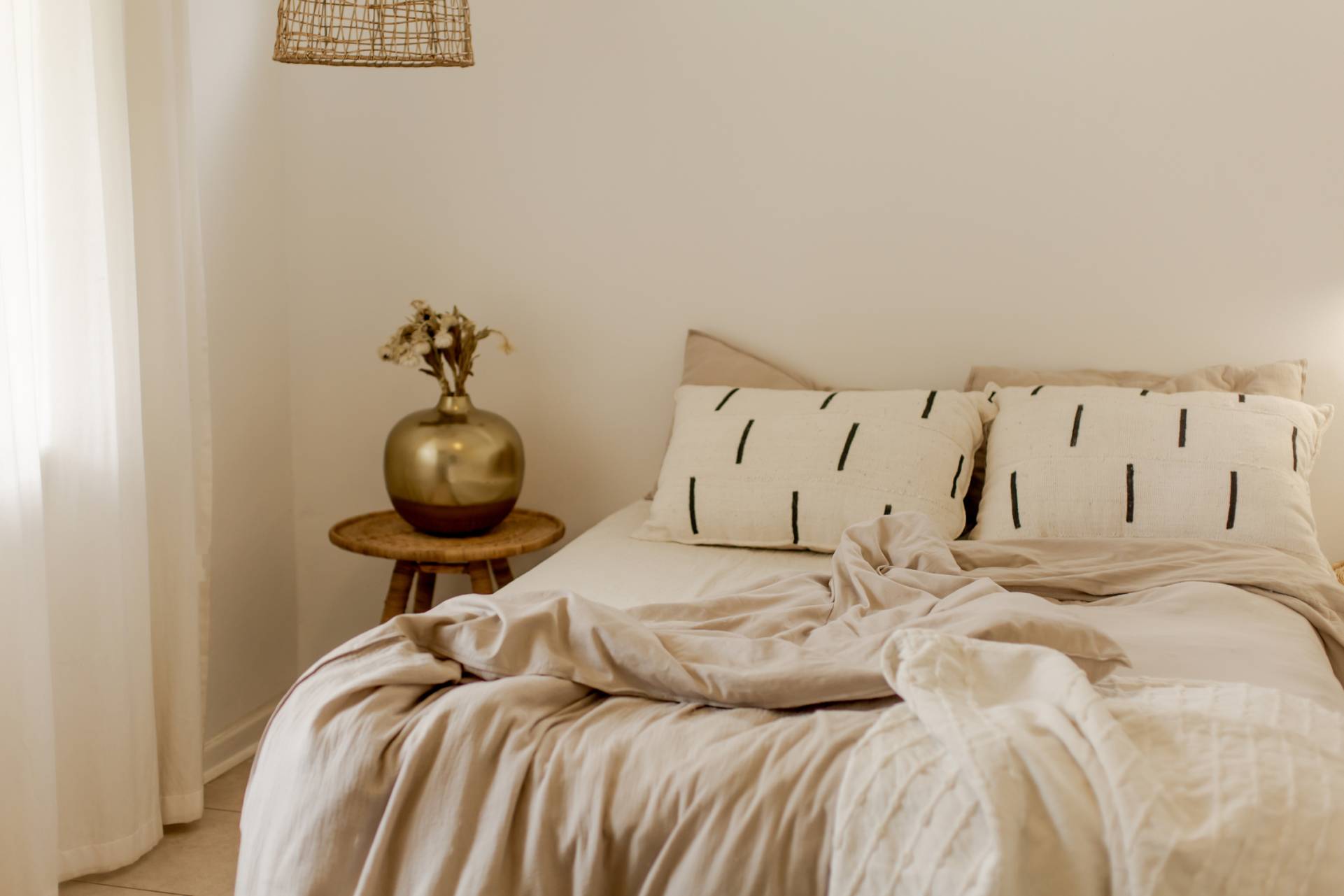 Plain bedsheet set in 300 thread count cotton percale Featuring a fitted bedsheet and 2...